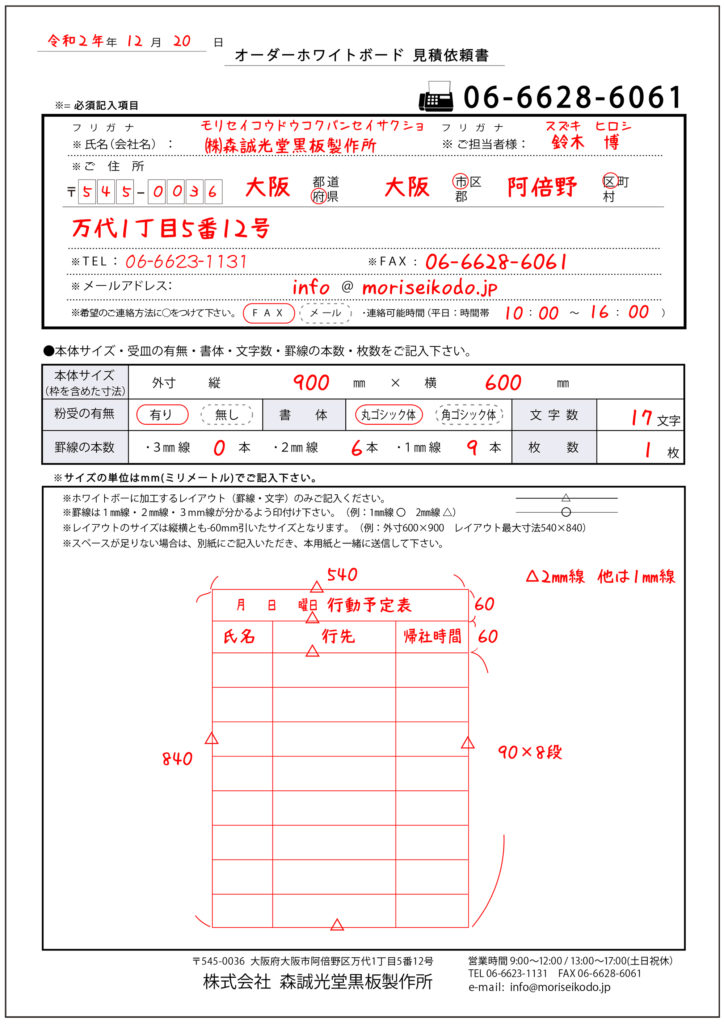 ホワイトボード 掲示板 黒板 の製造販売は森誠光堂黒板製作所まで。 罫線入り オリジナルホワボードの製作 大阪